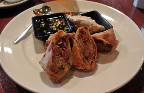 4 August 2014 (Brunch): One item everyone at Zinc recommends are the crispy duck confit eggrolls served with peanut curry and chile-lime dipping sauces. The duck is amazingly tender, the result of slow-cooking. It is wrapped in a won-ton type wrapper and is sliced diagonally (giving it the appearance of four egg rolls). Other components of this delicious appetizer are ginger, mushrooms, sesame oil, scallions, chopped peanuts. soy sauce, spinach and carrots though it is the duck itself that will win you over. These are easily among the best egg rolls in the city and are outstanding even without the dipping sauces. The peanut curry sauce stands out. It’s entirely unlike and better than the peanut sauce served with satay at most Thai restaurants. Unlike the Thai peanut sauce, it’s not cloying. It’s a savory sauce with a piquant punch to it.