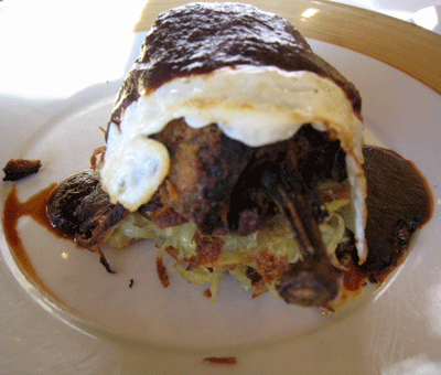 26 December 2010 (Brunch): Zinc’s pecan-crusted chicken and chorizo relleno, a unique rendition of the traditional New Mexican stuffed chile pepper, is also one of the state’s very best. A baked poblano is engorged with cream cheese, Asadero cheese, chicken breast and crumbled sausage then topped with a fried egg sunny and covered with a wonderfully smoky and piquant Ancho chile sauce. Ancho chiles are essentially dried poblanos which may surprise some considering poblanos have a very mild flavor, barely registering on the Scoville scale. Ancho chiles, on the other hand, can have significant heat and a pungent, smoky, wonderful flavor. More restaurants should employ this very diverse and very delicious chile.