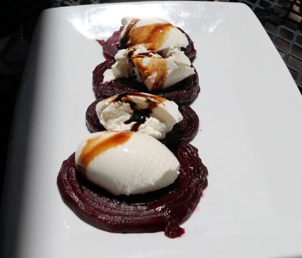 Somewhat less unpopular than Brussels sprouts are beets, perhaps the only sweet thing kids of all ages don’t like. That includes former President Barack Obama who once proclaimed “I always avoid eating them.” It’s no wonder they weren’t in Michelle’s White House garden. To their detractors, beets taste like dirt while those of us who love them prefer the euphemism “earthy.” Even the former would appreciate the Teahouse’s Burrata and Balsamic Roasted Beets, four quarter-inch thick discs topped with a creamy, milky slice of Burrata drizzled with Balsamic. The beet-haters can extricate the Burrata and leave the beets for the “Beetniks.” That’ll keep both haters and lovers at peace.