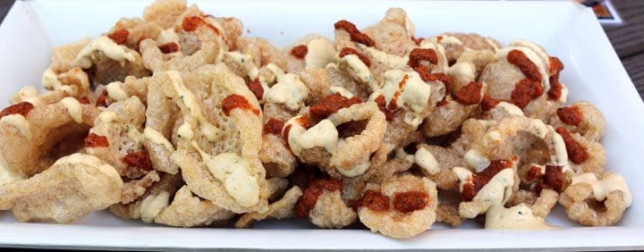 The term “chicharrones” has different connotations, all based on where you’re from. In New Mexico, chicharrones are almost universally deep-fried pork cracklings. Occasionally and in Texas, you’ll find restaurants serving something labeled “chicharrones” but which New Mexicans might call “cueritos” (a tripe-like pork strips marinated in vinegar). You’ll also see pork rinds (puffy, crispy fried skin) called chicharrones. The third type is what is served as an appetizer at the Tap House. A cilantro-lime crema and ranchero sauce is drizzled on top of the pork rinds. As pork rinds go, these are pretty good, but if you’re craving New Mexican style chicharrones, you’ll have to go elsewhere.