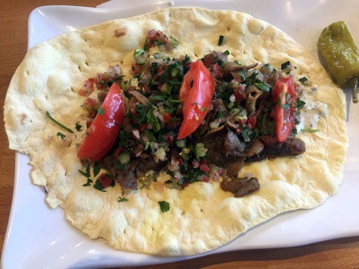 20 July 2018: Also on the menu are open-face sandwiches (freshly baked naan topped with tomatoes and parsley, with a cucumber and yogurt spread (mast o khiar), shirazi salad and a pepperoncini on the side). Sandwiches include a traditional lamb and beef gyro and eight other sandwich options. If you have doubts as to whether the rather thin naan would be sturdy enough to hold up against the volume and moistness of ingredients, you need not worry. Fold the naan over sandwich-style and slice the sandwich in half vertically and you won’t even lose much of the sandwich’s “innards.” The most discernible difference between this gyro and the gyro at say Gyros Mediterranean is the size of the lamb and beef amalgam. Chello Grill’s meat is sliced much more finely, but otherwise is seasoned just as well and is just as delicious.