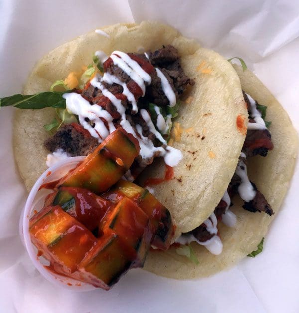 31 August 2019: The one dish that birthed the mobile food kitchen revolution in Los Angeles was Koji’s tacos which fused Korean and Mexican culinary cultures into an “addictive harmony.” Soo Bak Seoul Bowl offers seven tacos, all made with local corn tortillas and available in mix-and-match discounted quantities of two or three (your best bet). Aficionados of Korean BBQ will quickly gravitate to the Korean BBQ Taco (lettuce, cheese, crema and Sriracha). It’s a great taco though (and it might just be my imagination), it had more of a “carbon” (food cooked on the charcoal grill) flavor when prepared on the mobile food kitchen.