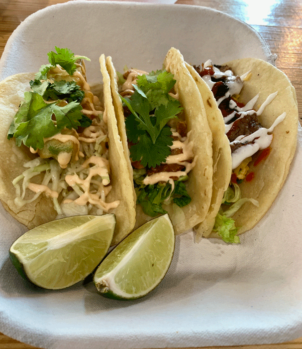 Soo Bak Seoul Bowl offers a “have it your way” approach to dining that lets you build your own meals. First you choose your “style,” either bibimbap, taco salad or burrito constructed with your choice of protein (Korean BBQ beef, spicy pork, sauteed mushrooms, tempura avocado, sweet chili tofu, teriyaki chicken or fire chicken), rice (white, brown or fried), toppings (sauteed daikon, sprouts, edamame, zucchini, carrots, seaweed) and sauce (red pepper, creamy avocado, sesame ginger, Sriracha lime crema, salsa roja, Sriracha, crema teriyaki). You can mix-and-match your tacos, too. The menu also offers banchan (small side dishes), eight types of kimchi and a number of Soo Bak classics such as sesame noodles and chile cheese fries. You’ll quickly discern that “fusion” goes only as far as you want to take it. It’s easy to craft a meal that’s strictly Korean, but if you want a little bit of Mexico, too, that’s easy, too.