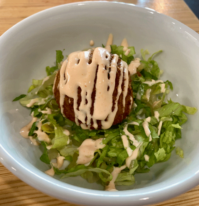 31 August 2019: And the fire chicken taco might not even be the most incendiary item on the menu. That distinction probably belongs to the kimchi fire balls. True to their name, these golf ball sized orbs laced with a Sriracha lime crema are a test for your taste buds. Somehow Chef Katrinak managed to sheathe fermented flames (kimchi) within a batter without having the whole thing explode from within (due to steam, not heat). The kimchi fire balls are served on a bed of lettuce for which you might be grateful as it’s a good foil for the heat.