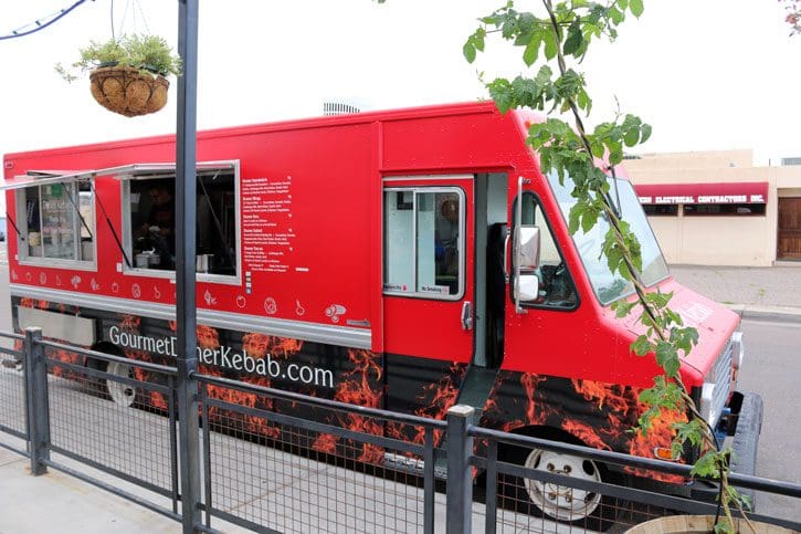 George, by the way, was the first in his family born in the United States. Before moving to Albuquerque, his family lived in Cleveland and of course, before that in Romania. If you try to discern an accent–Romanian, Cleveland, Albuquerque–in George, you won’t find one in the soft-spoken, genial proprietor of the Gourmet Döner Kebab. Before launching his mobile food kitchen, he ran the hotel restaurant at the historic Hiway House Motel which his family has operated for years. He hopes to launch a second mobile food kitchen soon and has aspirations to someday operate a commissary for Duke City mobile food kitchens.