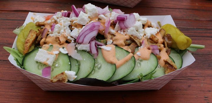 You’ll also love the döner tacos, three soft corn tortillas engorged with the aforementioned ingredients. It’s a New Mexico meets Asia meets Europe concept that really works. With the pronounced flavor of corn, the tortillas are a nice counterbalance to the addictive garlic aioli. We even asked for the garlic aioli on the döner salad though we also added the vinaigrette. Both the tacos and the salad are worthy of future and repeated visits to the Gourmet Döner Kebab, an American mobile food kitchen with the spirit and cuisine of Europe.