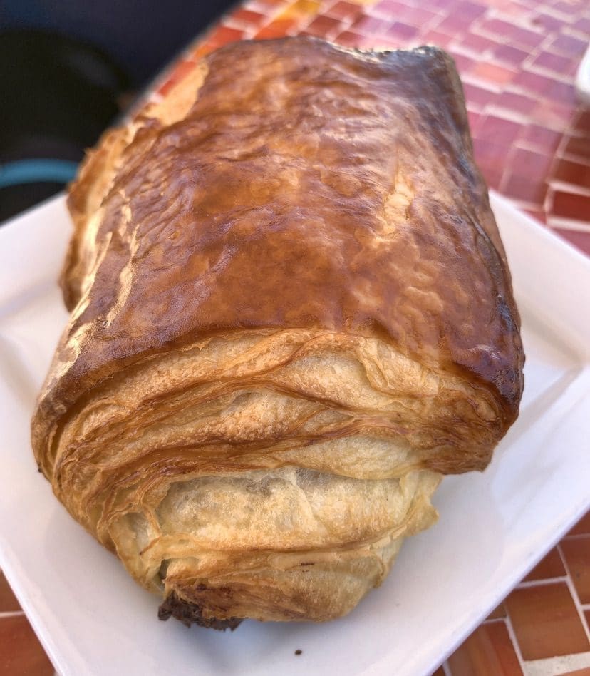 21 June 2020: Comedian Dennis Leary has a theory on why the French hate us so much. He surmises it’s because “They gave us the croissant. And you know what we did with it? We turned it into our croissandwich, thank you very much.” A croissandwich, it turns out is a family of sandwiches sold at Burger King which considering their repertoire of fast foods probably justifies any French antipathy. Perhaps Americans would be held in higher esteem by the French if we made chocolate croissants instead of croissandwiches. Not only would they be much more delicious, made well they’re impossible to resist. Pig + Fig makes them the way they should be made. The croissant is light, flaky, buttery heaven with just enough chocolate decadence to make you swoon.