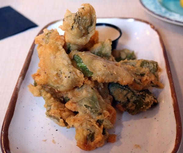 3 December 2017: In the past few years, restaurants across the Land of Enchantment seem to have discovered the delicious potential of green chile as an appetizer alternative (or addition) to salsa. It should come as absolutely no surprise that green chile strips have caught on. The real surprise is that it took so long. Groundstone’s version showcases Amber ale battered Bueno green chile strips served with a cooling avocado ranch dressing. The green chile is a bit on the mild side, but it has a nice roasted flavor. The avocado ranch dressing is a winner. Even better is the green chile ranch which our delightful server Shannon thought we might enjoy. The green chile ranch isn’t quite as thick as the Dion’s version, but it’s every bit as flavorful. All salad dressings are made on the premises.