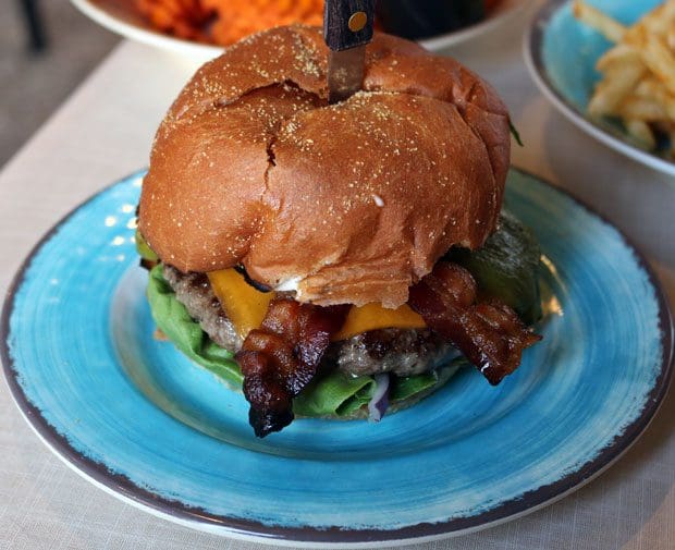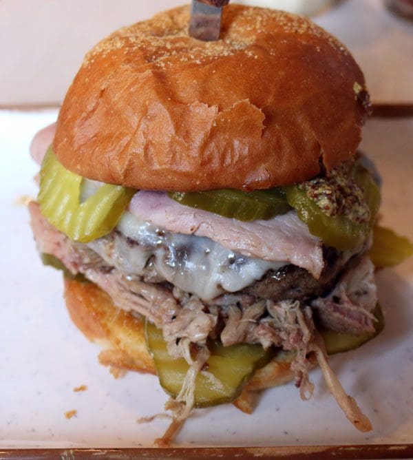 3 December 2017: Several elements define the Cuban sandwich, a hearty sandwich which got its start among the working classes in Cuba. What Americans have come to know as a Cuban sandwich typically includes thin slices of marinated pork roast, thin slices of ham, Swiss cheese and dill pickles. Groundstone pays tribute to the Cuban sandwich with a burger called the Cubano. The burger contains some elements of the popular Cuban sandwich, but it goes much further. Picture Akaushi beef topped with black forest ham, smoked pulled pork, provolone cheese, pickles, whole grain Dijon ale mustard, served on a Fano brioche bun. It’s a mouthful and then some. The generous portion of this burger’s three meats–rich, buttery Akaushi beef (a type of Wagyu); salty, intensely-flavored black forest ham and smoked pulled pork– will make carnivores very happy. It wouldn’t be a Cubano, however, without the pickles which provide a textural and flavor (zesty and sour) contrast.