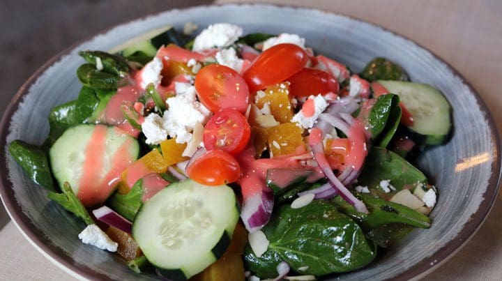 21 February 2018: British chef Yotam Ottolenghi expressed an obvious truth: “A well-made salad must have a certain uniformity; it should make perfect sense for those ingredients to share a bowl.” It doesn’t take a genius chef to know when ingredients are working together well. Your taste buds will quickly and easily discern that harmony for you. Groundstone offers five salads, the ingredients of each read like the promise of a great salad. Our inaugural salad experience was the spinach, beet and goat cheese salad (fresh spinach, golden beets, cucumber, red onion, grape tomato, goat cheese, almonds, with pomegranate vinaigrette). Most restaurants would probably serve such an amazing assemblage of ingredients with a cloying dressing. Groundstone serves it with a pomegranate vinaigrette that’s not quite lip-pursing in its tartness, but it’s definitely not sweet. The bitter, earthy goat cheese benefits most from the symbiotic tartness of the dressing, but so do the acidic grape tomatoes.