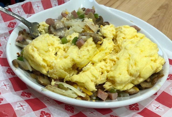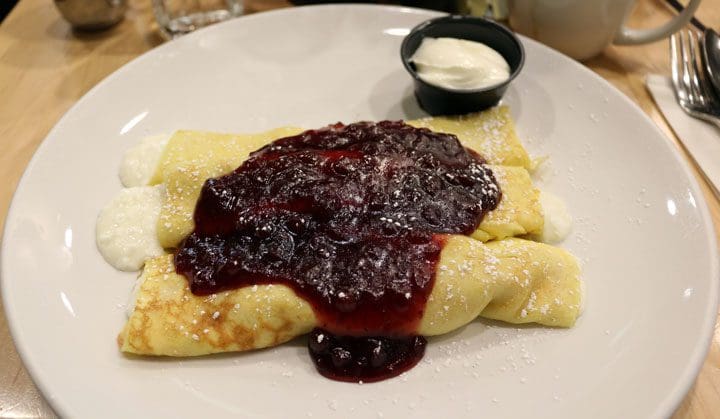 It’s a virtual certainty that the Swedish lingonberries used on some breakfast entrees aren’t locally sourced. You’ll never accuse the lingonberry of being a “snowbird.” These hardy berries thrive in cold weather climates from New England to Minnesota. Bring them South and they won’t survive the heat. Okay, so you can’t get locally-grown lingonberries on your pancakes, French toast or crepes in the Phoenix area, but the lingonberry sauce topping the cheese blintzes is the next best thing. Resembling the taste of cranberries, only just a tad more tart, lingonberries are a perfect complement to the Ricotta-cottage cheese blend with which the blintzes are stuffed. A little confectioner’s sugar imparts just a bit of sweetness.