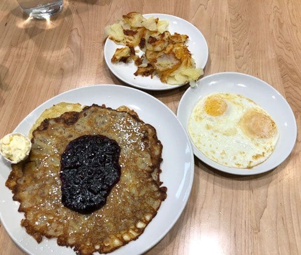 Here I am with my family from California and following in my friend Gil’s foot steps in Scottsdale found myself at Butters!!! I had the Swedish Cakes which was similar to the cheese blintzes with Lingonberry which was like IHOP Swedish Pancakes on steroids! Very good and very rich, Skipping low carb for the moment,added 2eggs perfectly over medium mixed with extra crispy hash browns. My grandson had a specialty pancake which was the cinnamon pancakes,also very rich (a yelp stole a piece). I will return…