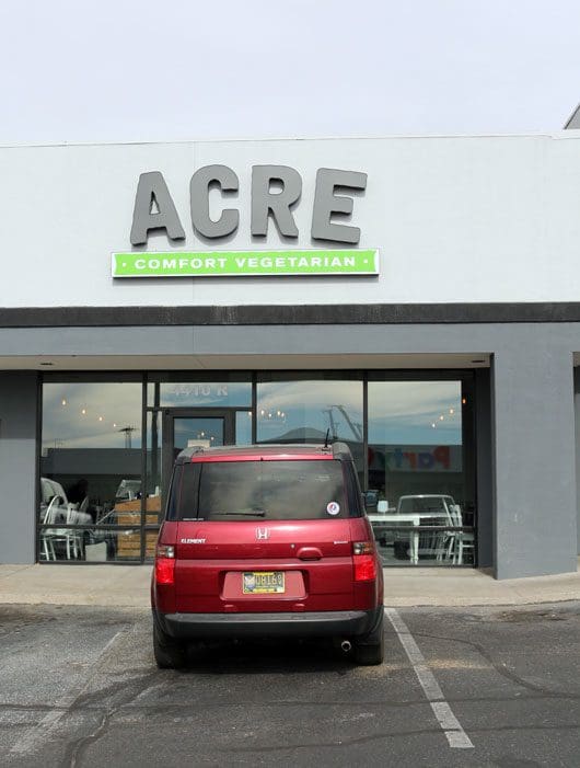 You are, however, missing some of the very best vegetarian food in Albuquerque if you don’t visit The Acre, where as we discovered, those claims of “comfort food” and “satisfying devoted carnivores,” are all true. My friend and colleague Elaine and I had to do a double-take when we perused the menu which was teeming with some of Matt’s comfort food favorites: cheeseburger, grilled cheese, mac n’ cheese, enchiladas and more. Also available were vegetarian versions of a hot dog (marinated, braised carrot dogs), meat (less) loaf and several sandwiches which sound so good, you might not miss meat at all.