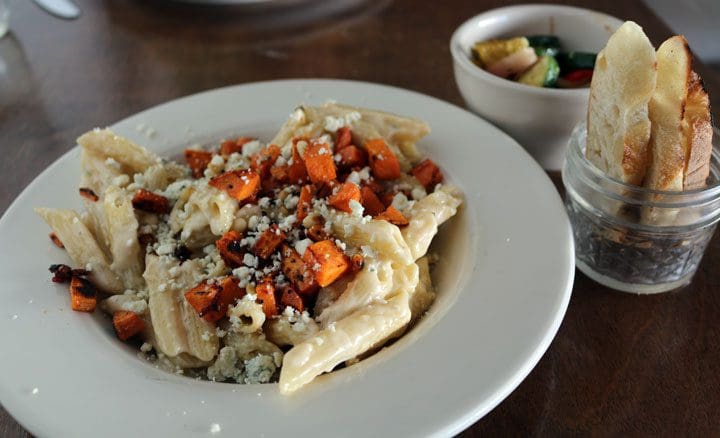 4 January 2018: From among the “mains” section of the menu, deciding whether to have mac n’ cheese, enchiladas or pasta will prove a challenge akin to selecting one favorite from among your three favorite Dallas Cowboys. Ultimately, the seasonality of the pasta dish won me over. Though labeled strictly “pasta” on the menu, this dish is so much more: roasted butternut squash, Gorgonzola cream, piñon and Parmesan. Frankly, the dish had me at “roasted butternut squash,” a very underrated ingredient at Duke City restaurants. Vibrant, sweet, creamy and earthy, the roasted butternut squash, cut into small cubes, melds wonderfully with the sharp and robust Gorgonzola cream and nuttiness of the Parmesan. This dish is reminiscent of so many rich, delicious pasta dishes found at Italian restaurants.