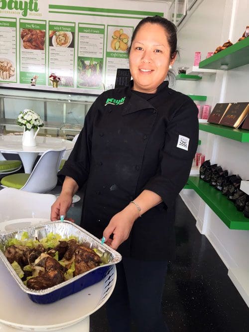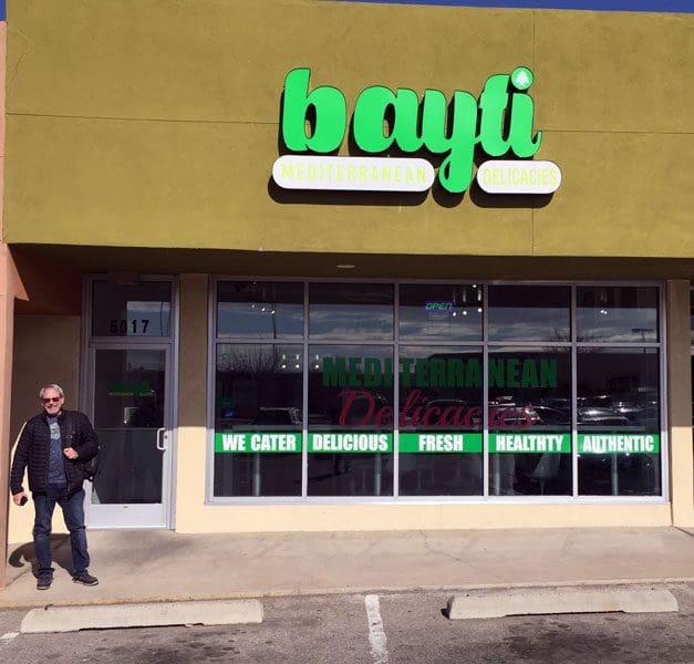 When my friend Bruce “Sr Plata” Silver and I stepped into Bayti Mediterranean, I wondered if we would experience the type of hospitality and warmth shown by Lebanese compadres and comadres in Peñasco. We were greeted warmly by Raquel who immediately discerned our confusion. Bayti is not a restaurant per se. It’s akin to a deli in which food items are apportioned into containers, displayed under glass in a deli case and sold by the pound. Though take-out accounts for much of its business, Bayti also has a handful of tables in which diners can enjoy their meal on the premises. Raquel, our hostess, was a gracious, knowledgeable and perpetually smiling presence who explained all the dishes as if she’d been raised on them (though she had never had any of them, having grown up in Mexico). As in Peñasco, it was delightful to speak Spanish while enjoying Lebanese food.