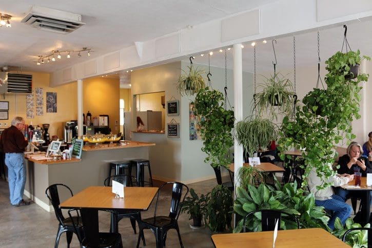 For the versatile among us who enjoy breakfast items for lunch and burgers for breakfast, Café Laurel is a dream come true. You can order anything on the menu any time of day. Sadly this means 8AM to 3PM Tuesday through Friday and 9AM to 2PM on Saturday and Sunday. The menu isn’t especially large, but it offers good variety of mostly American and New Mexican favorites. You may want to get there early or you might miss out on the daily quiche or daily special. Breakfast favorites include omelets, huevos rancheros, burritos and crepes. Warm sandwiches—served with your choice of macaroni salad (curry-based), Greek salad or chips—include several standards and others which should be. Meatless enchiladas, vegetarian sandwich and a number of salads are available. Sweets and treats seem to go quickly.
