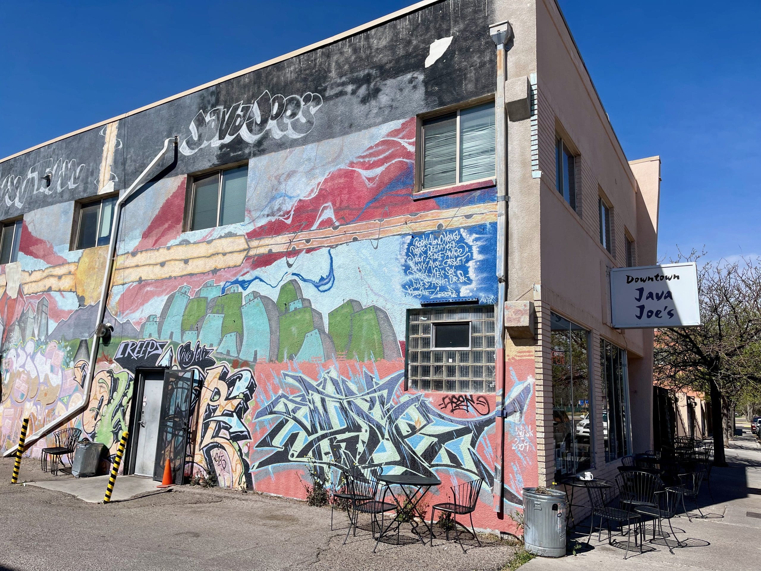 During my inaugural visit to Downtown Java Joe’s, a number of tourists, not all of them millennials, were snapping selfies in front of the east wall where a towering graffiti-inspired tribute to city life dominates. One of them exclaimed “this used to be Tuco’s lair.” Another chimed in, “yeah, until Walter White blew it up?” Tuco? It quickly dawned on me they were talking about Tuco Salamanca, one of the best television villains in recent memory. The exterior of Java Joe’s did indeed serve as Tuco’s sanctuary and Walter White did blow it up by throwing fulminated mercury on the floor. Thankfully, however, real life didn’t mirror that Breaking Bad episode. Tuco’s lair is certainly not in ruins. It serves as the home to Java Joe’s, one of the city’s most popular coffee shops.