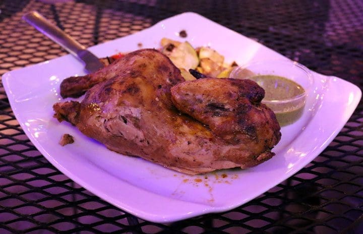 Thinking she would certainly order one of the chef-cut char-grilled Angus steaks, my carnivorous Kim surprised me by requesting the roasted half chicken (herb-rubbed and served with chimichurri). Admittedly she had seen the pulchritudinous poultry platter destined for other tables. She would never otherwise eschew a good steak. What made this particular chicken a great choice was the chimichurri. There are many variations of this popular Argentinian meat sauce. Yellow Brix’s rendition is among the best we’ve had. It’s a complex (not complicated) sauce in that it imprints itself on your taste buds in so many different places. Kim’s only regret is not having requested a second portion. It enlivened an otherwise ordinary chicken.