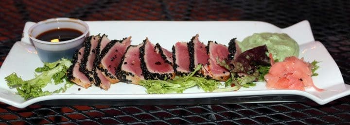 My entree choice actually came from the starters menu where I couldn’t get past the Sashimi tuna (seared ahi slices with wasabi, ginger and a hot-spiced soy sauce). It was a nice choice though the soy-wasabi combination was a bit on the salty side, making me crave vinegared rice, the element on sushi that makes it less salty. Sans soy and wasabi, the seared ahi was beautiful in both appearance and flavor. Perfectly pink and rare, the ahi was moist and delicious. Nine thinly sliced little slabs of sumptuous ahi made for a great entree indeed.