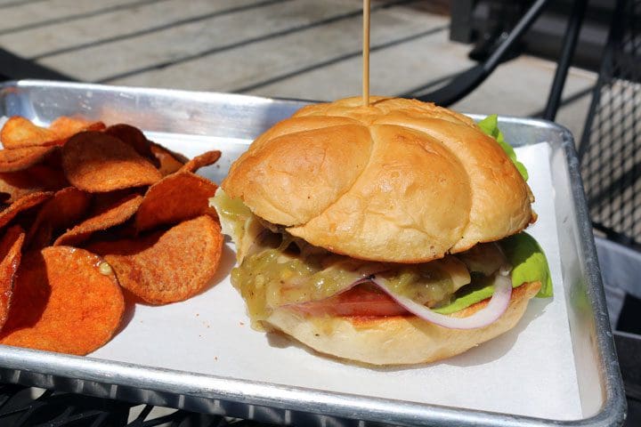 The first two burger options on the menu are aptly named. If you have a monstrous appetite, go for the Green Monster, twelve ounces of New Mexico beef served in six-ounce patties. For lighter fare, try the Green Gouda Goo, a six ounce patty with your choice of cheese and green chile stacked on a toasted potato (what else) bun with Boston bib lettuce, tomato, red onion and pickle. My sole complaint—and because we’re in New Mexico, it’s a big one—is about the insipid green chile which had no heat. All other elements of the burger were fine, but without a modicum of heat, chile is just pretty green colored fruit. If you’re tired of fries by now (and even if you’re not), you’ve got to ask for chips instead of fries. The house-made barbecue chips are easily the best in Albuquerque (excluding Jay’s served at the AK Deli and which are actually made in Chicago)!