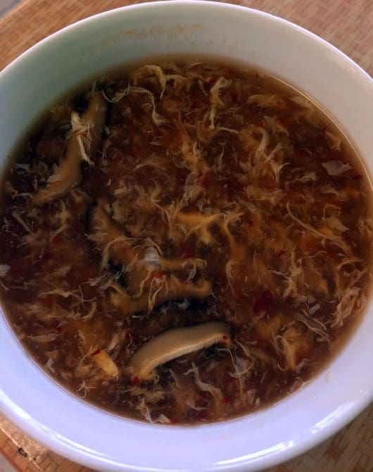 20 April 2018: Beth Porter describes the egg drop soup with noodle as “one of the best dishes in a long time. Ultimate Comfort food with great flavor.” After prompting my first, second and third visits, Beth could recommend a brackish bowl of muddy water and I’d try it. Thankfully the spicy and sour egg drop soup is much better than muddy water. It’s better, in fact, than every variation of hot and soup soup in New Mexico save for perhaps the one served at the Pop-Up Dumpling House. Served piping hot and redolent with sour notes, it’s a superb soup. It’s also a rarity in that it combines delicate, subtle egg drop with assertive, in-your-face spicy-and-sour and it works well. 528 offers everything from egg drop soup to Tom Yum Soup, all priced well south of a ten-spot.