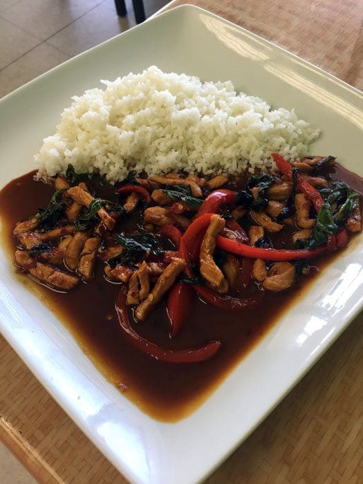 20 April 2018: If you want a dish that’s not nearly as intensive and every bit as delicious as the Ka-Chin style spicy chicken, 528’s spicy chicken basil (chicken, onion, bell pepper, jalapeño, green beans, baby corn, Thai basil) is your hook-up. Thai basil (horapa) adds a subtle anise-licorice flavor and perfume to every dish in which it’s used. Those qualities are exemplified on this absolutely mouth-watering dish. You’ll appreciate the crisp, fresh vegetables as much as you will the thin ribbons of breast meat chicken. You’ll want to bathe every morsel of rice in the sweet-savory sauce. Heck, you might want to dab a little of it on the back of your neck to hold onto it a bit longer.