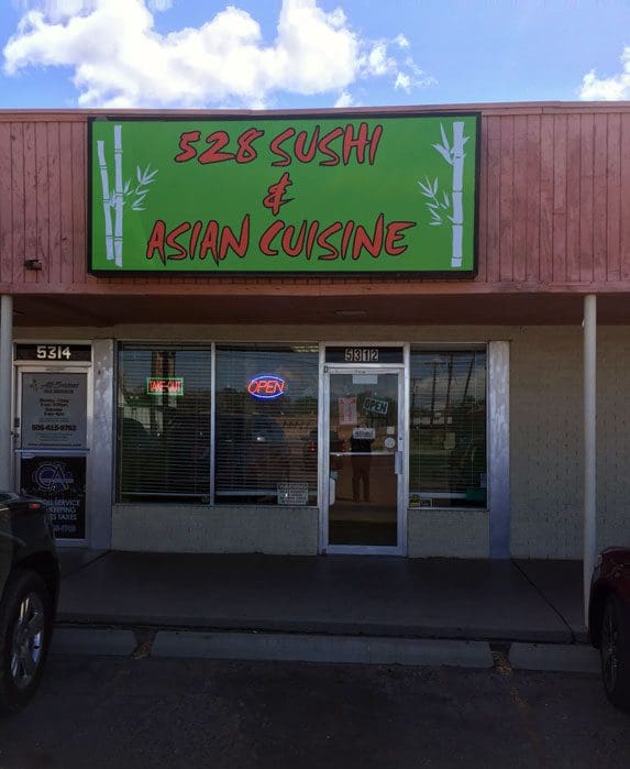 20 April 2018: The affable owner (and shame on me for not knowing his name after three visits) learned how to make sushi in Pennsylvania and honed his skills in Oregon. He’s been living in Albuquerque for twelve years now and believes he’ll stay. He actually rented the space which currently houses his restaurant so he’d have the kitchen space to prepare sushi for his clients. For year’s he had the sushi concession at Kirtland AFB’s commissary and now prepares sushi for the cafes at UNM’s north campus. He operates 528 with his wife and father-in-law, allowing him to keep his prices ridiculously (and I do mean ridiculously) low. Sushi at 528 will cost you about half what you’d pay at other sushi restaurants in the city–and it’s good stuff!