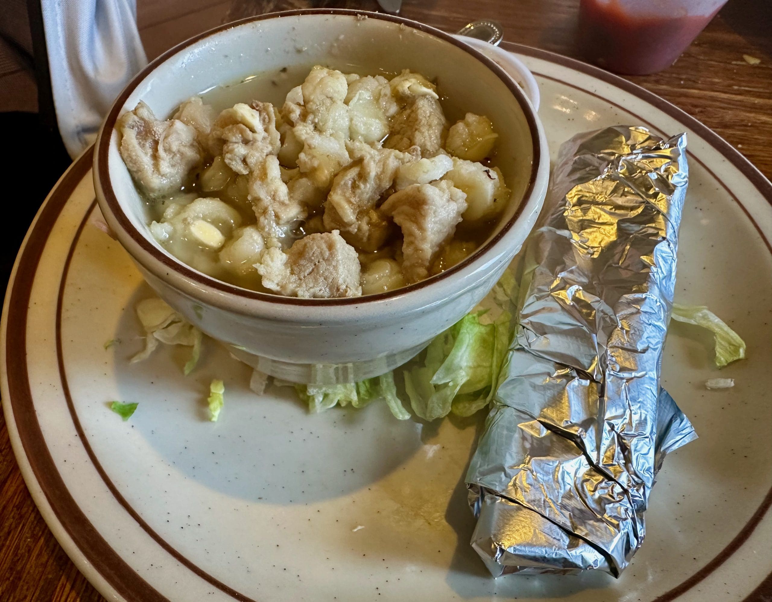 The sign outside says “Chowders Back”. They are serving a green chile, chicken, corn chowder. Give it a try. It’s quite tasty. Though, of course, I think it would be better with more green chile.