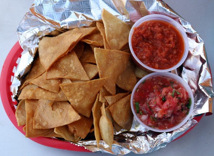 12 May 2018: Long-time Duke City diners may remember that before there was a Sophia’s in that dilapidated 4th Street location, there was Fajitaville and a young chef named Dennis Apodaca. When Fajitaville closed in 2002, Dennis rented the location and named it for his daughter Sophia. One holdover from Dennis’s days at Fajitaville are some of the best salsas in town. An order of salsa and chips rewards diners with two salsas–a smoky chipotle salsa and a pico de gallo style salsa coupled with housemade chips served warm. Neither of the salsas are especially piquant, but both are redolent with freshness and flavor. The chipotle salsa is among the very best in New Mexico and that’s saying a lot. The chips are lightly salted and oversized for Gil-sized portions of salsa. Unfortunately you’ll run out of salsa before you run out of chips.