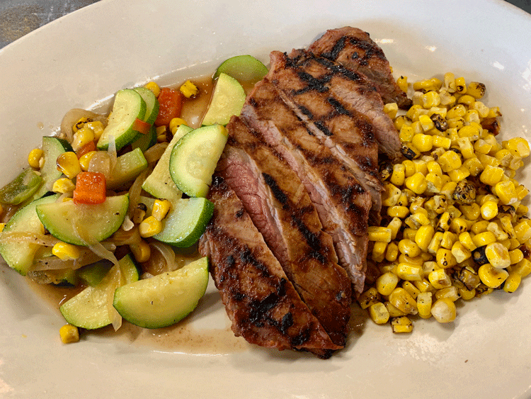 21 December 2019: In our dozens of visits to London restaurants, I don’t recall ever having seen London broil on the menu. Despite its name, London broil was “invented” in North America, not in London. The term “London broil” has come to mean a tough, lean steak that’s marinated, prepared at medium-rare and sliced thinly across the grain of the meat, making it easier to chew. Despite the tougher cut of beef, a well-prepared London broil can be so flavorful that you might not even notice…or might even enjoy any additional chewing. The London broil at Dave’s is one such steak. That’s because Dave’s uses a USDA choice black Angus flank steak marinated in soy sauce, chili sauce, Worcestershire sauce, molasses, liquid smoke and minced onions. It’s a carnivore’s delight!