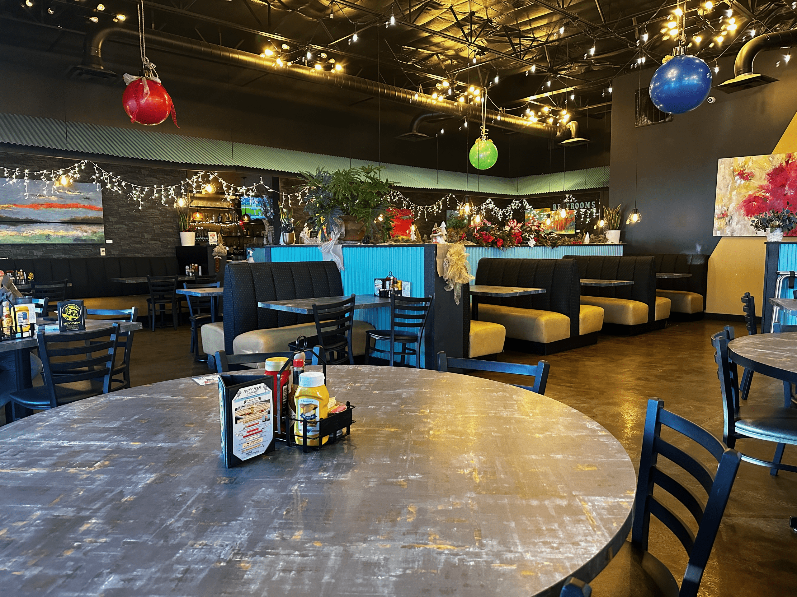 Dave’s Valley Grill is located in the corner spot previously occupied by Papaburgers which closed unexpectedly after the passing of its owner. Nary a vestige of the previous occupant remains. The metamorphosis is amazing. Gone is the wall which separated two distinct dining rooms. In their place is one colorful, cavernous room with tables and booths arrayed in close, but not personal space proximity to one another. The booths do offer some sense that there are two distinct dining rooms, but not as much as before. Gone are the sports posters and bric-a-brac of a fast food venue, replaced by unframed artwork.