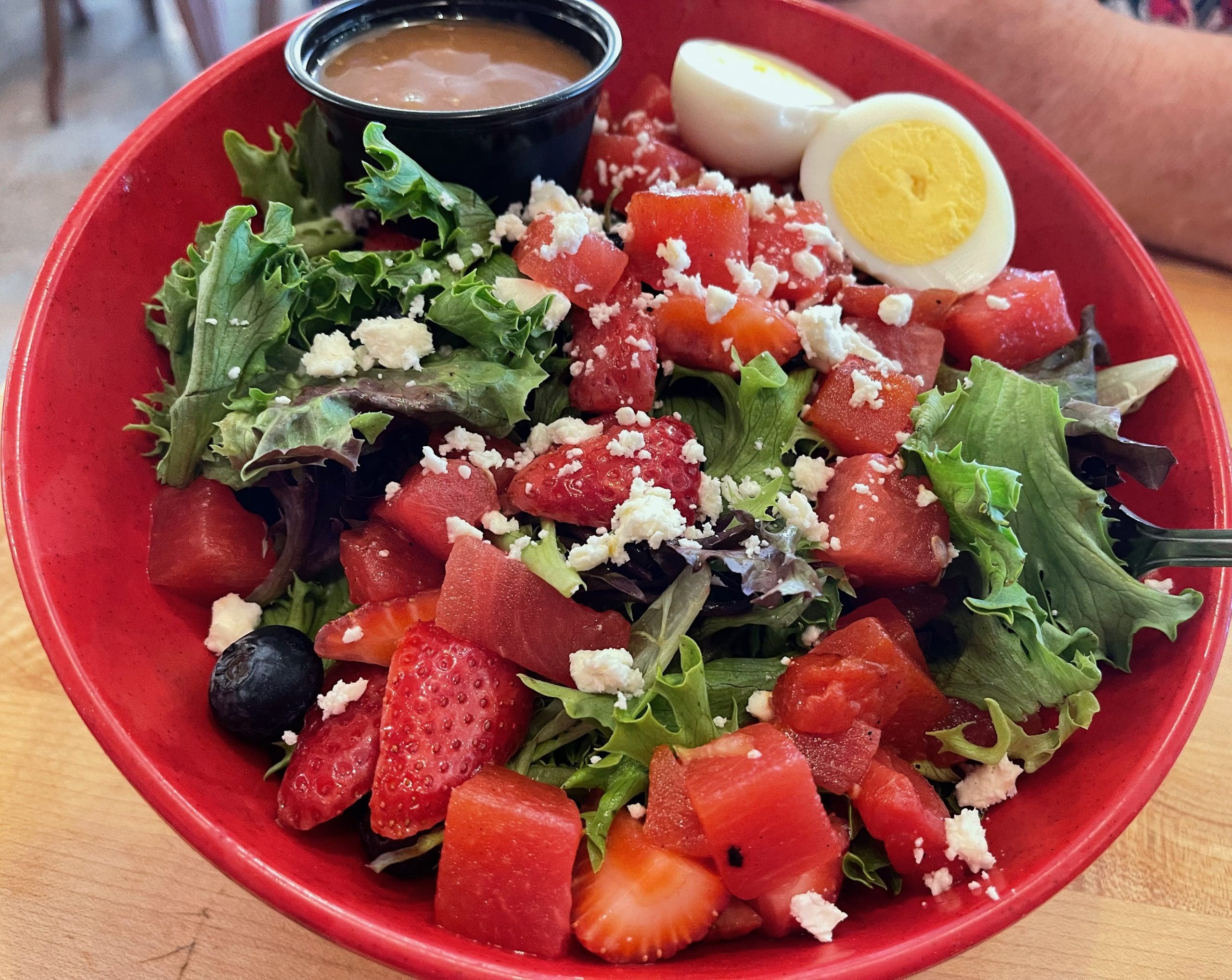 18 July 2021: If you’re a child of the 50s or 60s, the term “fruit salad” might evoke nightmares. Back then, Del Monte and other purveyors of canned fruit and vegetable products called their fruit salads “fruit cocktail.” Fruit cocktail consisted of peaches, pears, grapes, pineapple, cherries, high fructose corn syrup, sugar and corn syrup. It’s much worse than it sounds. Other 50s and 60s era fruit salads were even worse. Just ask my friend Becky about “ambrosia,” a cloying, whipped-cream-based “salad” abundant with soft, mini marshmallows and colorful fruit.