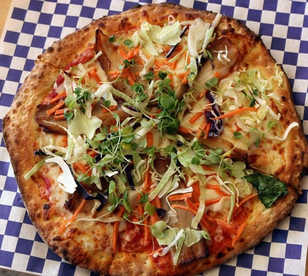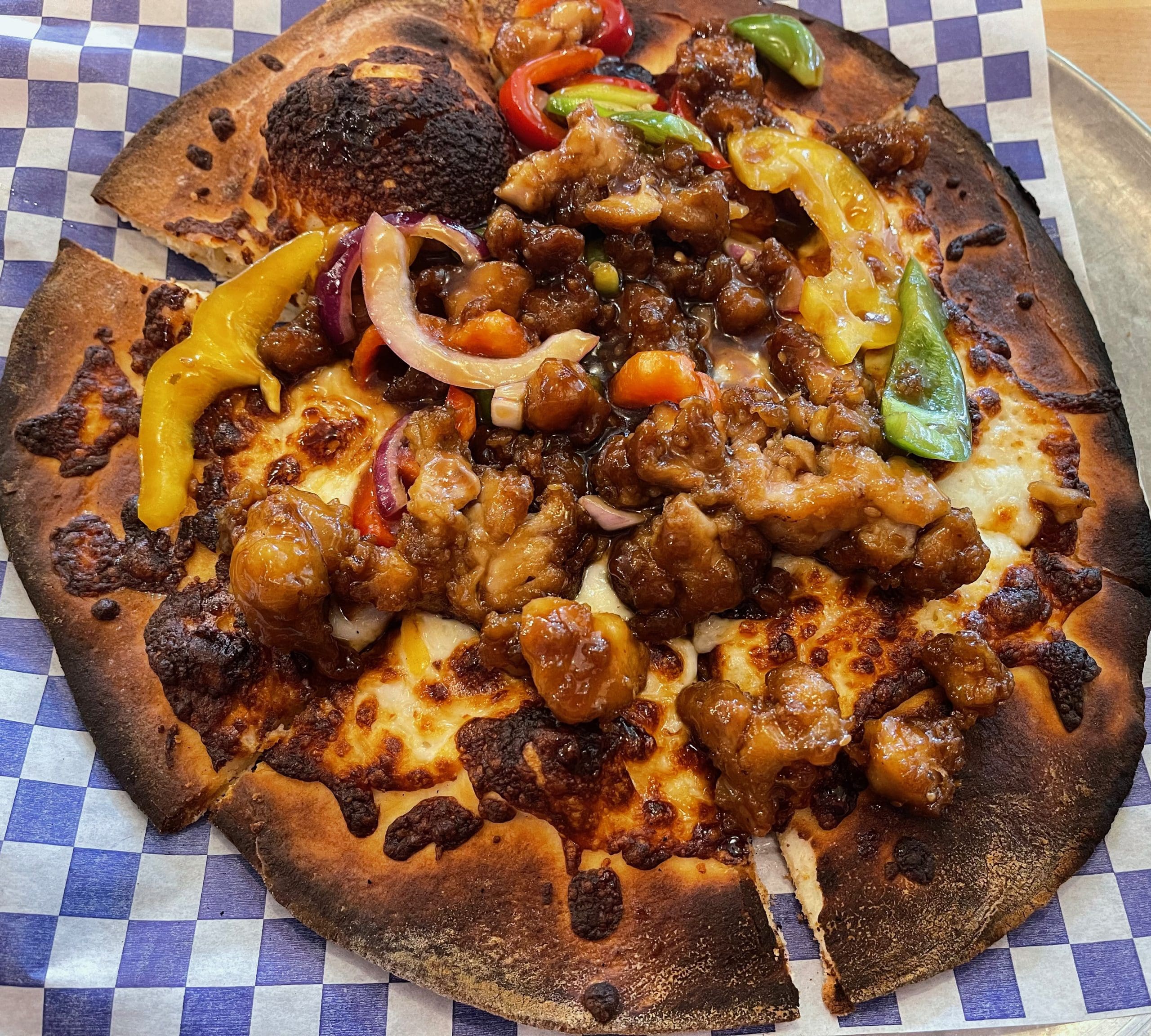 My first life-altering pizza was a white clam pie from Frank Pepe’s in New Haven, Connecticut. That was back in 1979. It remains one of the five best pizzas I’ve had in my life. Perhaps because of the gigantic coal oven, the char was pronounced but entirely edible and delicious. That wasn’t the case with the orange chicken pizza I describe.