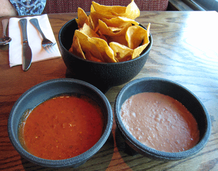 Fortunately, while you’re perusing the menu, the attentive wait staff gives you a preview of your upcoming dining experience with a basket of crispy, low-salt chips which are substantial enough for the fiery red salsa and the warm bean dip served complimentarily with every meal. The salsa and bean dip are like a “yin and yang” duo of prandial precursors. After the salsa has set your tongue on fire, follow up with the bean dip as a flavorful extinguisher.
