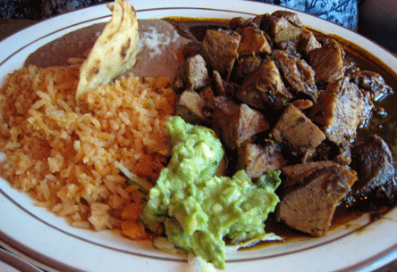 Each meal is accompanied by flour or corn tortillas as well as the best sopa de fideos (a wonderfully spiced vermicelli soup) you’ll ever have. Sopa de fideos wasn’t in my mom’s comfort food repertoire so I came to appreciate this highly flavorful soup later in life. It’s surprising that more Mexican and New Mexican restaurants don’t offer it. Each meal also includes fresh guacamole dip which is made with fresh Hass avocados, jalapenos, tomatoes, onions, cilantro and fresh lime. Despite all those “additives,” the prevalent flavor is of avocado, just as it should be.