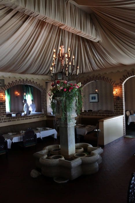 Focusing solely on the literal translation, perhaps the modern day urban equivalent of a romantic outdoors tryst is a meal at Pars Cuisine which specializes in the Persian food Khayyam enjoyed during his time. At Pars (synonymous with Persian), that cuisine is served in a milieu which may inspire a little romance in its own right. The restaurant’s epicenter is one of the most opulent and classy settings in town, where families and couples sit together on a cushioned floor below a billowing silk tent and listen to the burbling fountain while they partake of exquisite cuisine. Chair-backs on each cushion provide comfort and support. This beautiful backdrop is visible from other more conventional seating areas.