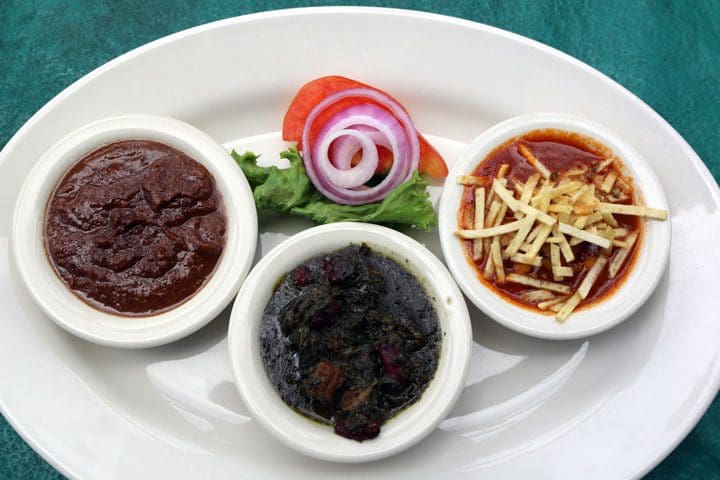 9 June 2018: Alas, it took nine years for us to return to Pars where it was my goal to confirm that the fesenjoon was as good as my initial impressions believed it was. Rather than focus solely on my desired dish, the Persian soups and stews section of the menu practically leapt at me with an offering called the Mazeh Stew Combination, essentially a three stew sampler featuring not only a vegetarian version of the Fesenjoon which had enthralled me, but Ghormeh Sabzi and Ghimeh served with saffron-enriched rice. First things first–the Fesenjoon is unbelievably good, a very unique and delicious stew. It’s not for everybody, but adventurous diners will at least enjoy trying it.