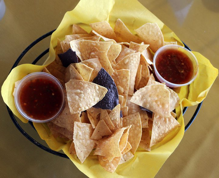 Tortilla Flats has operated for more than three decades about halfway between the Plaza and the terminus of Cerrillos. Its tag line–where the locals eat–seems to confirm Carlos’s contention. It’s not just locals who appreciate Tortilla Flats, however. Such print and online media powerhouses as Conde Naste, Sunset Magazine, Travel & Leisure, Money Magazine and Zagat have sung the praises of this popular restaurant, hence its “nationally acclaimed” boast. As we circled a very crowded parking lot, we espied license plates from several states and not just those in close proximity to the Land of Enchantment. The restaurant was packed, but because the noontime temperatures were already flirting with 95, we had the cozy patio all to ourselves.