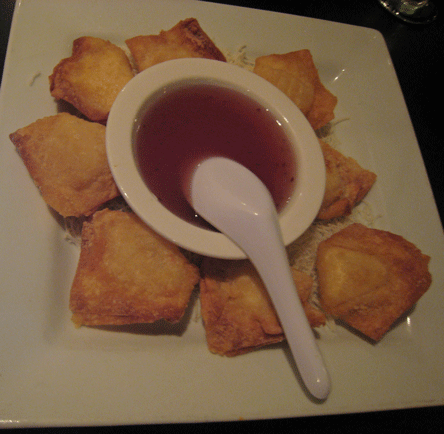 Another vegetarian appetizer, albeit one that originated in America and not Thailand, is Crab Rangoon, eight deep-fried dumplings engorged with cream cheese, crab meat and scallions wrapped in wonton wrappers then deep-fried. Though more often served in Chinese restaurants than in Thai restaurants, a commonality among many of these deep-fried gems is a cream cheese sweet enough for cheesecake. That’s not the case with the Crab Rangoon at Malee. The cream cheese is most assuredly savory and there’s plenty of it in each square-shaped dumpling. As good as the Crab Rangoon is, the sake tinged raspberry sauce is cloying, almost candy sweet.