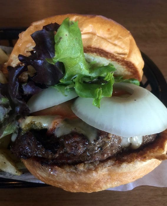 I had the mushroom Swiss and it was good but overcooked as I asked for medium rare and got some variation on well done. The bread, ‘shroom/cheese topping and meat were all tasty. My son reported the same plus/minus dynamic with his burger.