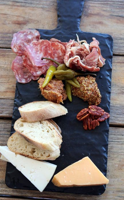 The Steel Bender menu is hardly atypical among brew pubs across the Duke City though there are a couple of surprises. Chief among them is the Brewer’s Board, described on the menu as “an assortment of seasonal and local ingredients: meats, cheeses, vegetables, “things pickled” and more.” Though our server didn’t know any of the specifics, the board includes prosciutto, sliced sausage, Gouda, Cheddar, bacon jam, whole grain mustard, candied pecans, sliced bread and pickled peppers reminiscent of pepperoncini in terms of appearance and sweet heat. This “market priced” appetizer is a nice way to start your meal. The biggest surprise for us was the bacon jam typically made by slowly simmering bacon, onions, brown sugar and sundry spices. It’s a nice foil for the salty, fatty meats and cheeses. Of course, the meats and cheeses are also a good counterbalance for the kick of the whole grain mustard.