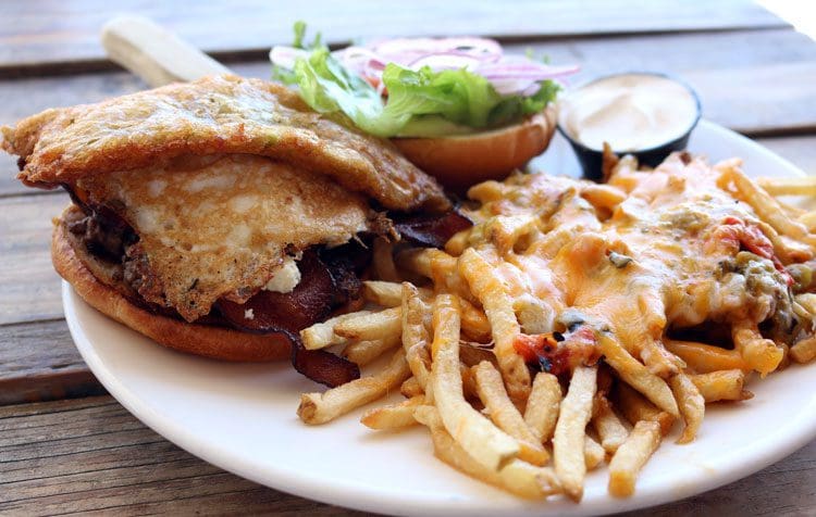 There are only two burgers on the menu, the eponymous Steel Bender and a build-your-own option that starts with lettuce, tomato, and red onion. A “Make Mine New Mexican!” option is sure to be popular bet with house-made queso, Bueno chopped green chile, and onions though much of that would be extraneous if you order the Steel Bender (Cheddar, Swiss, Gorgonzola or American cheese, bacon, fried egg, and a fried Bueno green chile strip with steel bender brewyard sauce). Heed my advice and that of Maxime Bouneou, the much loved and missed former chef-owner of Torinos @ Home who described Gorgonzola as the blue cheese “For You Blue Cheese Haters.” The Steel Bender goes great with the Gorgonzola which is piled on generously. It was one of the burger’s strong points as was the fried egg which didn’t explode onto my shirt as some fried eggs on other burgers have done. We weren’t quite as enamored of the fried Bueno green chile strip whose piquancy (if it had any to begin with) was obfuscated by other flavors. Though we requested medium-rare, the beef patty had nary a hint of pink. Still, this is a better burger than we expected from a brew pub.