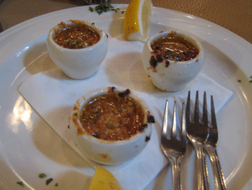 Another artful appetizer choice is Bacchus famous escargots in garlic butter and sun-dried tomatoes. These escargots are reputed to be among the very best in the Chicago area and we can attest to never having had better (though the escargot served at the long defunct Marmiton may have been the equal of these). As at Le Marmiton, these escargot are removed from their shells and served in very small cups with even tinier forks with which to extricate the luxurious snails. Served three to an order, these snails are rich and buttery–so good you will want a dozen or so.