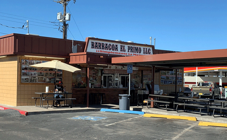 Before embarking on their brick-and-mortar operation, the good folks who own Barbacoa El Primo operated a mobile food kitchen (that’s food truck for you, Bob) for about a decade. They garnered such a loyal following that a more permanent structure seemed the most logical next step. Barbacoa El Primo is located in an edifice that previously housed a LotaBurger. It’s not exactly a sit-down restaurant though seating is plentiful, all of it outdoors on picnic tables. Many of those tables are under an expansive overhang flanked on either side by parking spots from back-in-the-day when LotaBurger was a true drive-in.