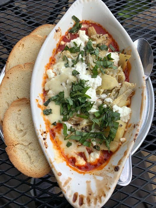 To make it a true Detroit experience, we started with soft drinks which had their genesis in the Motor City–Vernor’s Ginger Ale, a Detroit classic since 1866 for my Kim and Faygo’s red cream soda for me. At the risk of offending Texans everywhere, we both thought the red cream soda was as good as Big Red, a Texas staple since 1937. Both were a great counterbalance for the acidity of the roasted artichoke appetizer (roasted artichokes, herbed goat cheese, marinara, baked and served with crostini) we shared. More than any marinara we’ve had in a long time, Via 313’s is acidic and low in sugar. That’s not a bad thing. Some tomatoes are grown to impart that flavor profile. The marinara didn’t quite overwhelm the tangy, sour goat cheese or slightly bitter artichokes, but it made it tougher to discern those flavors.