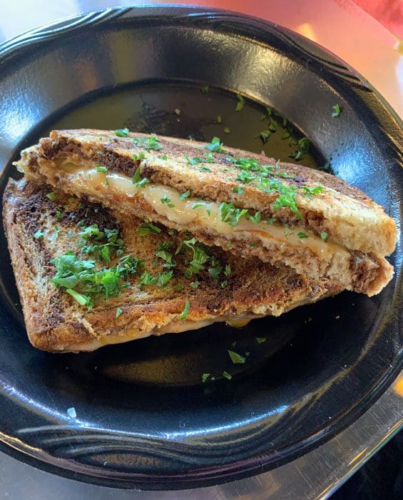 8 December 2018: You might think a sandwich on a Baja Mexican menu would stick out like a sore thumb, but Last Call’s signature sammich (truffle grilled cheese, dill aioli, Swiss, Cheddar and Smoked Gouda cheeses, white truffle oil on marble rye) is right at home here. This is a next-level grilled cheese sandwich (BOTVOLR, take note) with a troika of turophile favorites, three cheeses with mild though distinctively different flavor profiles. The dill aioli provides a tangy counterbalance to the salty richness of the cheeses while the white truffle oil lends earthy, savory notes. The marble rye is a perfect canvas for such a cheesy masterpiece.