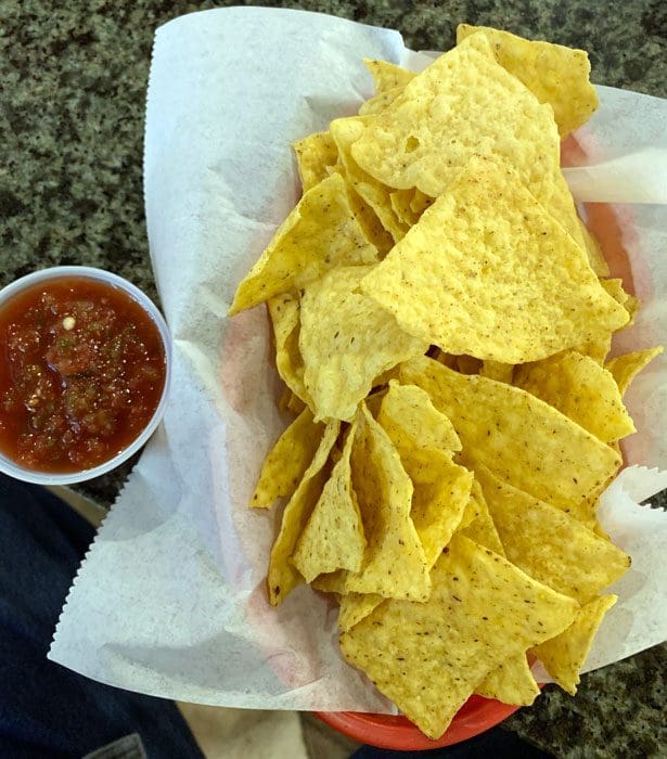 Because New Mexican entrees, listed under the heading “Mexican League Relievers” are made with cumin (both red and green chile), our choices were more limited than we would have liked. Chips and salsa were a highlight of our meal. The salsa has a nice bite though my Kim would argue the acerbic Mexican oregano took away some of the natural sweetness of the tomatoes. The chips are light, crispy and relatively low in salt.