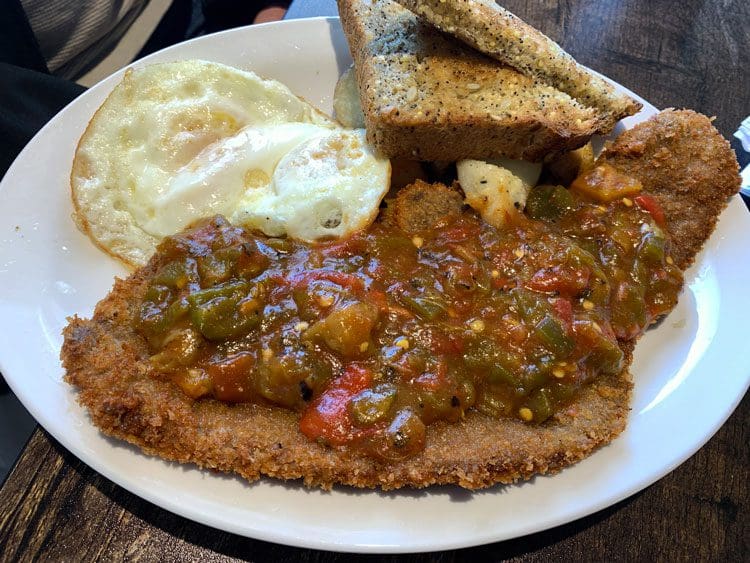 BEST BET: Chicken Fried Steak, Hash Brown Cake, Pura Vida Coffee, Breakfast Burrito, Huevos Rancheros