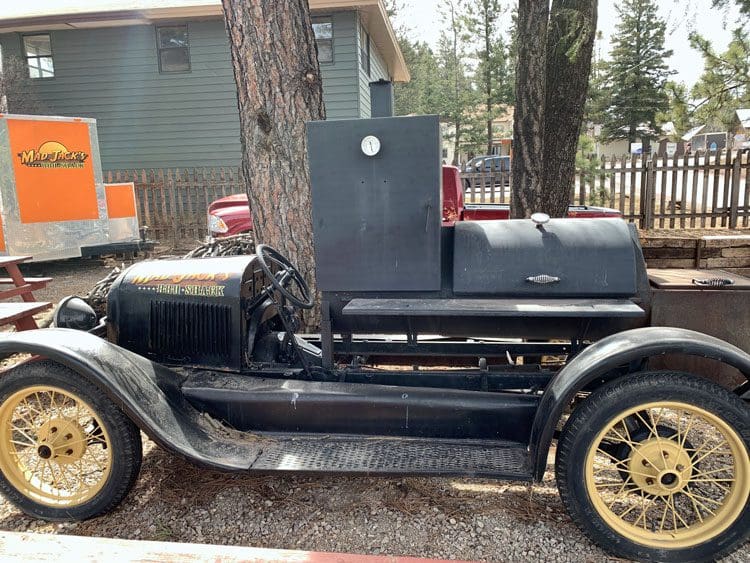 in 2012, Jackson bought a barbecue trailer he parked next to a gas station along highway 183 in Lockhart. The sobriquet “Mad Jack’s” was a natural considering you’d have to be crazy to try to compete with four long-established and recognized barbecue restaurants. Mad Jack’s barbecue trailer was emblazoned with the tagline “the best BBQ in Lockhart east of 183” in that the fabulous four were all west of the highway. It was Lockhart’s loss and New Mexico’s gain that the city imposed unreasonable regulations that made it difficult for any food truck to survive. It gave Jackson the impetus to relocate to the Land of Enchantment where his family had vacationed.