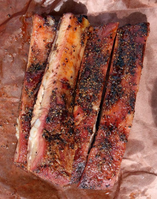 The brisket and the pork ribs look superb, and the description you offer on how to evaluate a good brisket ranks right up there with William Harvey’s description of the human circulatory system in 1628.